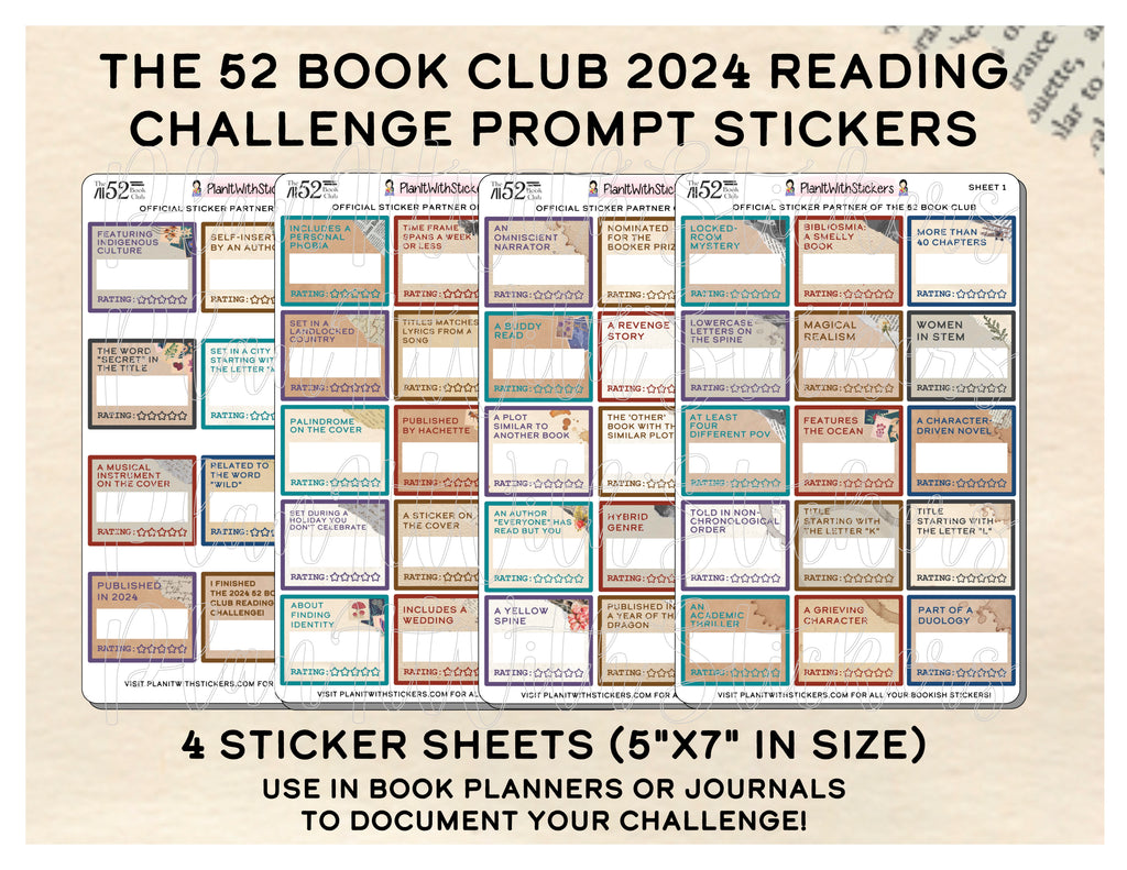 2024 The 52 Book Club Reading Challenge Prompt Stickers for